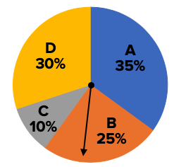The heads and tails each have a one-half probability, but A, B, C, and D don't all have the same probability. If you look closely at the spinner, A is the biggest sector with 35%, followed by D with 30%, then B with 25%, and C with 10%.