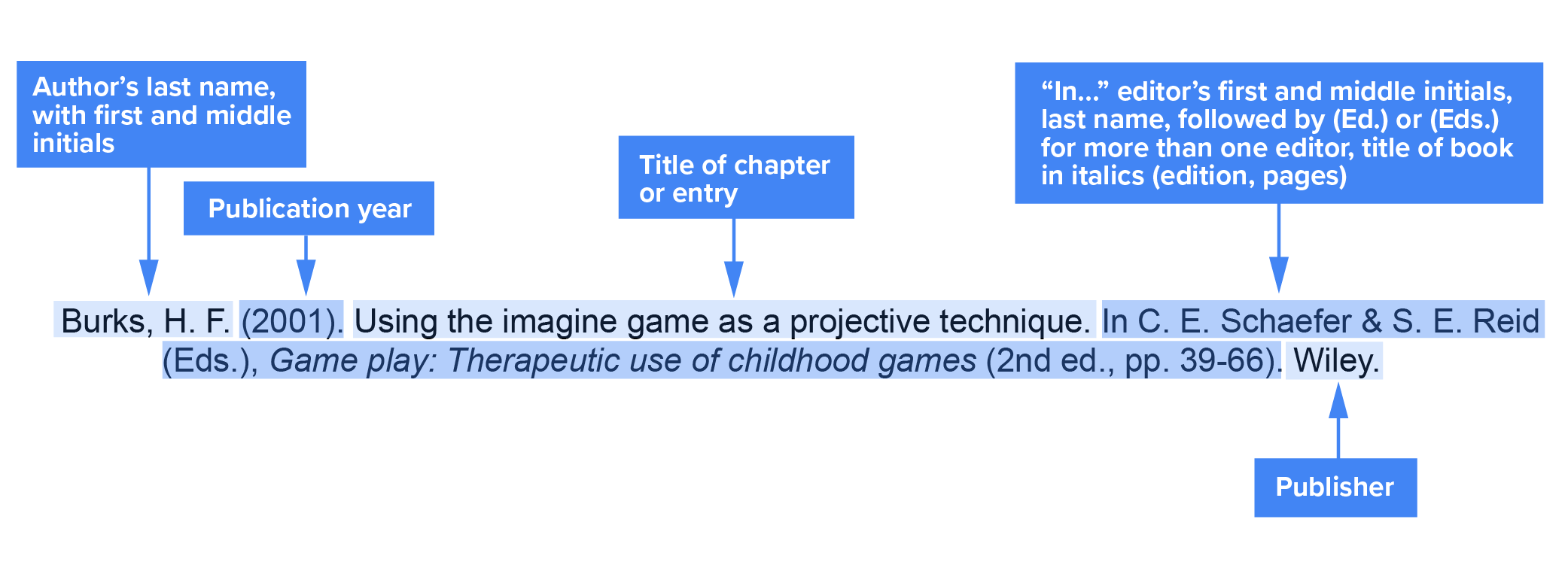 Author: Give the last name, a comma, and the initials of the first name and middle name (if available). Do not list an author’s professional title, such as Dr. or PhD. End with a period.