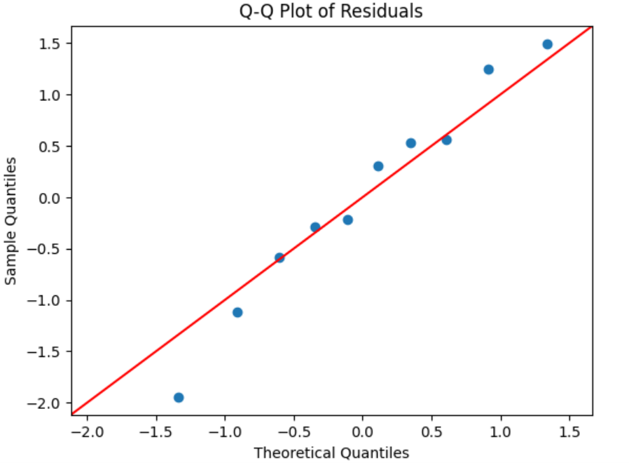 Deviations: If the points stray far from the line, our residuals might not be normal, indicating potential problems with our model.