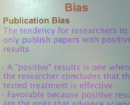 Another type of bias is the publication bias. The issue here is when researchers not only, but often publish papers with positive results. So a positive result is one where the researcher can conclude that the tested treatment is effective. So they're not necessarily positive because it's a good result, but positive in that the effect is caused by the treatment. And they're more often published because they're favorable, and they're the ones that advance science. Sometimes when you're studying something, and the results come back that your treatment does not have an effect, that's still important to know. However, it doesn't necessarily look as glamorous because it's not telling you what should happen and what does happen.