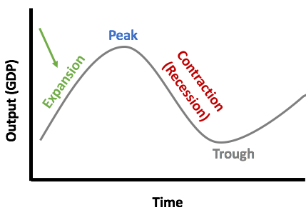 In our business cycle diagram, you can see this period where GDP is shrinking, which would be our recession.