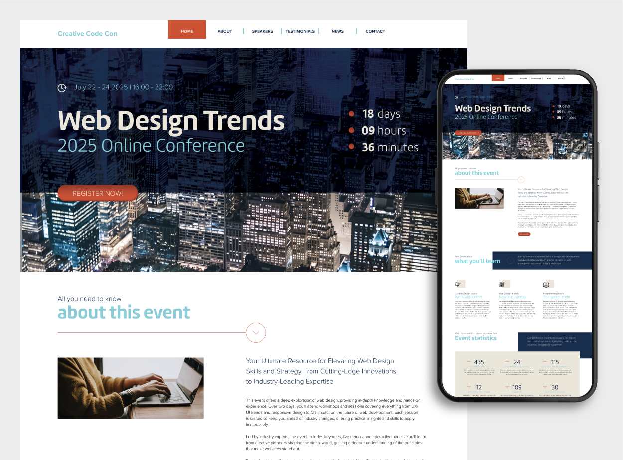 Below, you have an example of two website layouts: a desktop website and its mobile counterpart. If you were to look at the source code for the website, you'd find the hexadecimal color codes that correspond to certain colors on the page. Remember that "hexadecimal" means six numbers, and the six numbers correspond to the same red, green, and blue color channels as RGB. The first two numbers in the hexadecimal code stand for red, the second set for green, and the third set for blue.