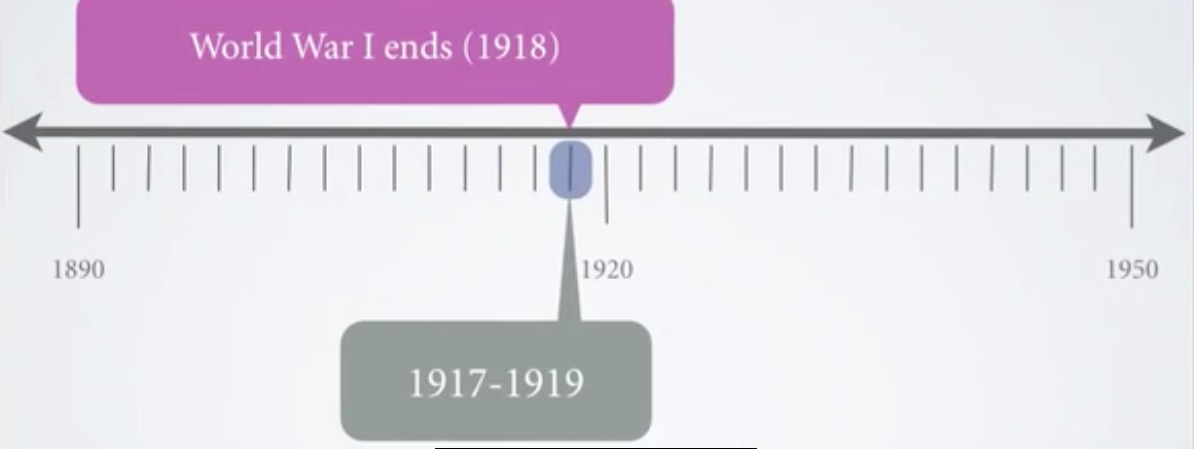 The artwork in this lesson is from the years 1917 to 1919 in Zurich, Switzerland, highlighted in the timeline below. Switzerland is where the Dada movement developed in 1916.
