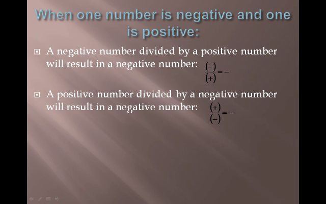 Dividing Positive and Negative Numbers