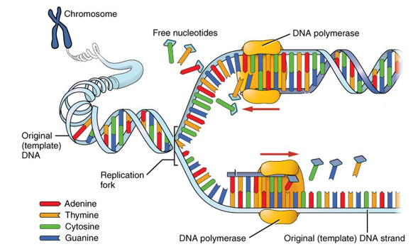 DNA polymerase, in addition to playing a role in DNA replication, also helps with DNA repair. Sometimes, during the process of DNA replication, DNA can change in a way that will change a gene, so a gene mutation can occur.