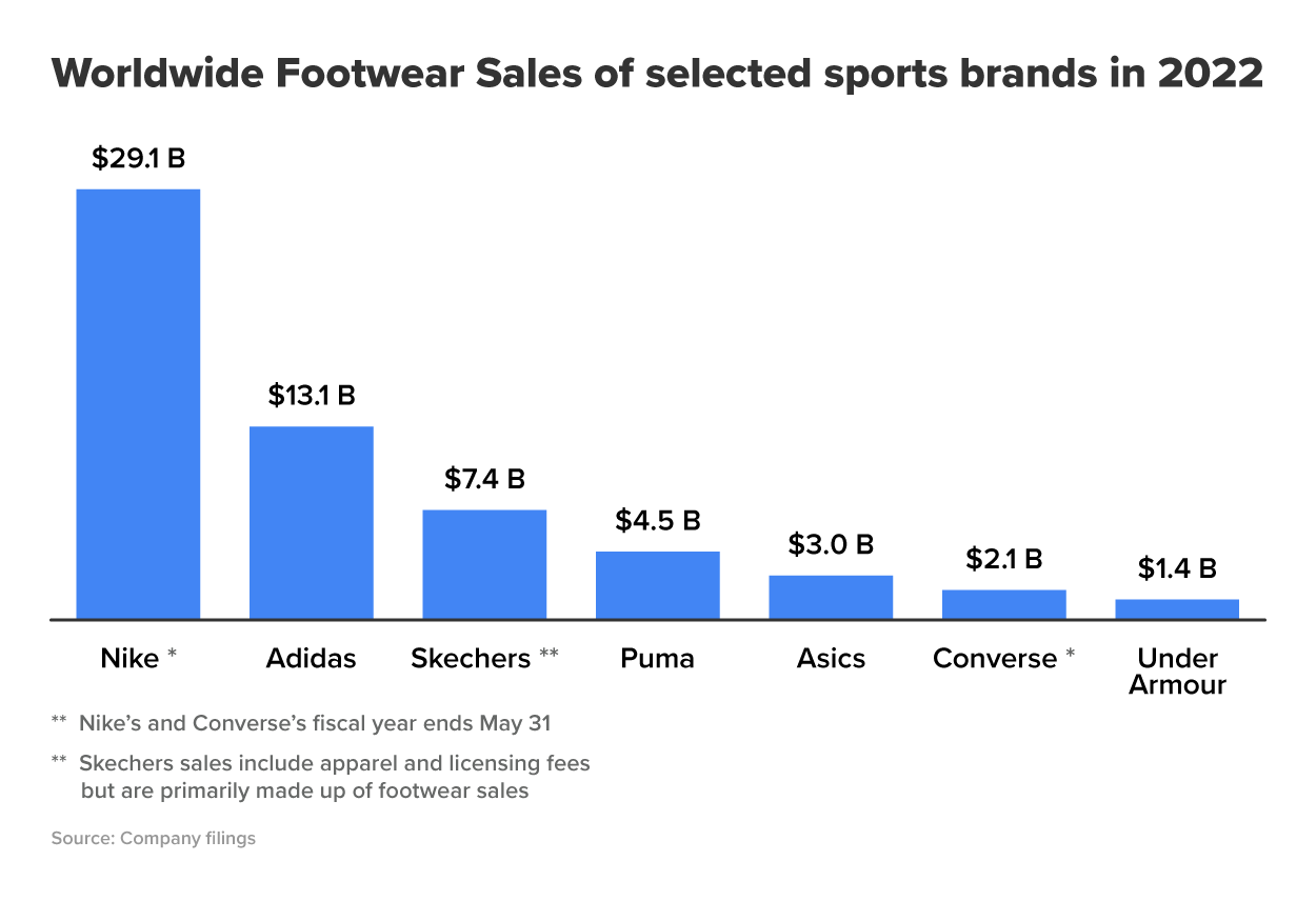 Richter, F. (2023). Ahead of the Game: Nike Rules the Sneaker World. Retrieved from www.statista.com/chart/13470/athletic-footwear-sales/