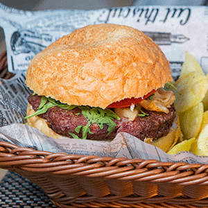 la hamburguesa (hamburger) |