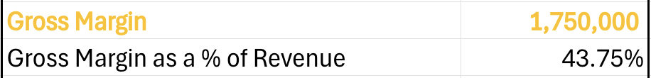 Once the cost of goods sold is calculated, Leyla can calculate her gross margin. Gross margin represents what is left of the revenues after all costs of goods have been subtracted. To determine gross margin as a percentage of revenue, divide gross margin by total revenue.