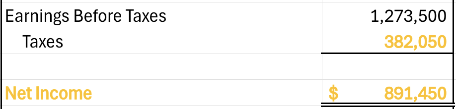 Finally, taxes must be paid. In Leyla’s case, she is paying a 30% rate. She applies this rate and subtracts it from her earnings before taxes to yield her projected net income.