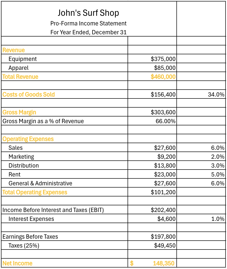 The pro forma income statement is the company’s estimate of how it plans to convert its revenue into net income, which is the result after all expenses have been accounted for.