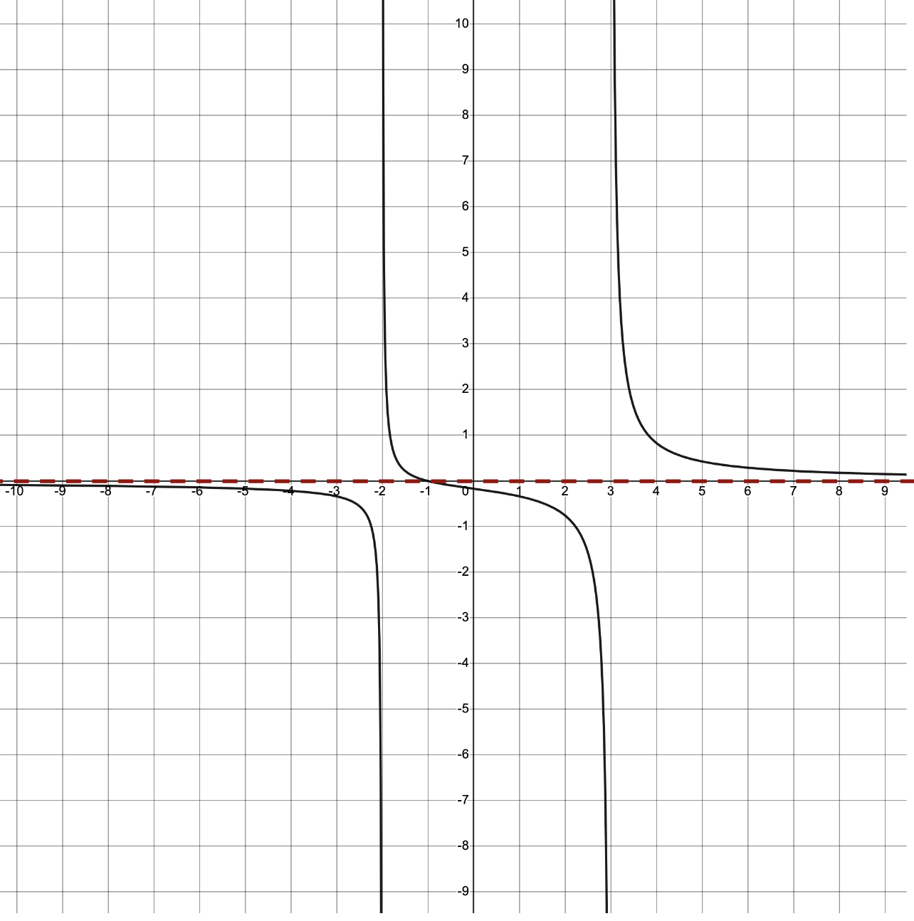Let's consider the previous rational function, as it also has a horizontal asymptote. The equation, once again, is