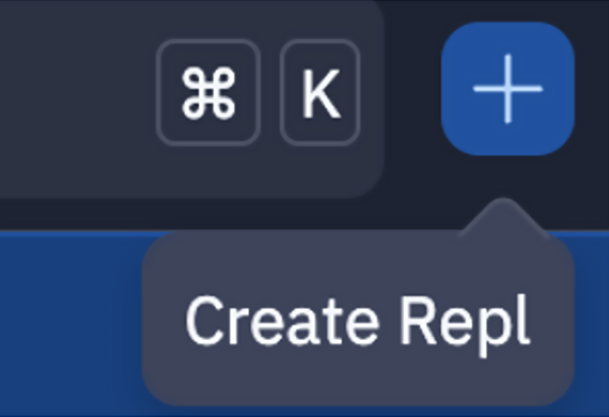 1. Click on the “+” Create Repl button in the top right. This will allow the creation of a new project.