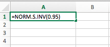 A third way to find the critical z-value that corresponds to a 5% significance level for an upper-tailed test, or a right-tailed test, is by using Excel. Again, go to the "Formulas" tab. We're going to insert our "NORM.S.INV" under the "Statistical" column, but we're not going to put in 0.05 for the 5%. Because we're looking at the upper part of our distribution, this is going to correspond to the 95th percentile. We're going to enter 0.95 and notice how we get the same critical z-value we did from our table and our calculator, which is a positive 1.645.