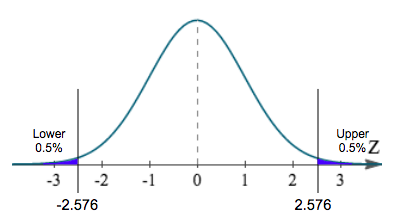 This positive 2.576 corresponds to the upper 0.5% of our distribution.