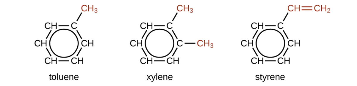 Toluene and xylene are important solvents and raw materials in the chemical industry. Styrene is used to produce polymer polystyrene.
