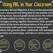 Let's look at an example of PBL in the classroom. Today's example is for an elementary school. And the objective is this. A focus of the elementary school is teamwork and being kind to one another. It's an anti-bullying focus.