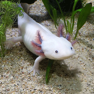 The axolotl is an endangered salamander whose natural habitat is Lake Xochimilco, in Mexico City. |