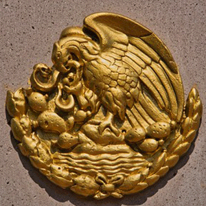 The national symbol of Mexico is a golden eagle standing on a cactus with a snake in its beak. |