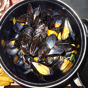 Les moules-frites (mussels and fries), originally from Belgium but just as popular in this region |