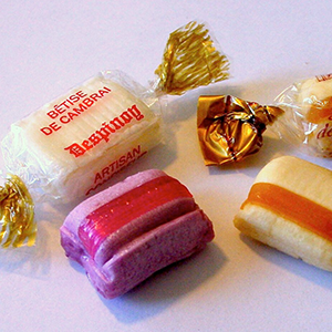 Les bêtises de Cambrai, a famous mint-flavored candy, which was originally created as a mistake (une bêtise) |
