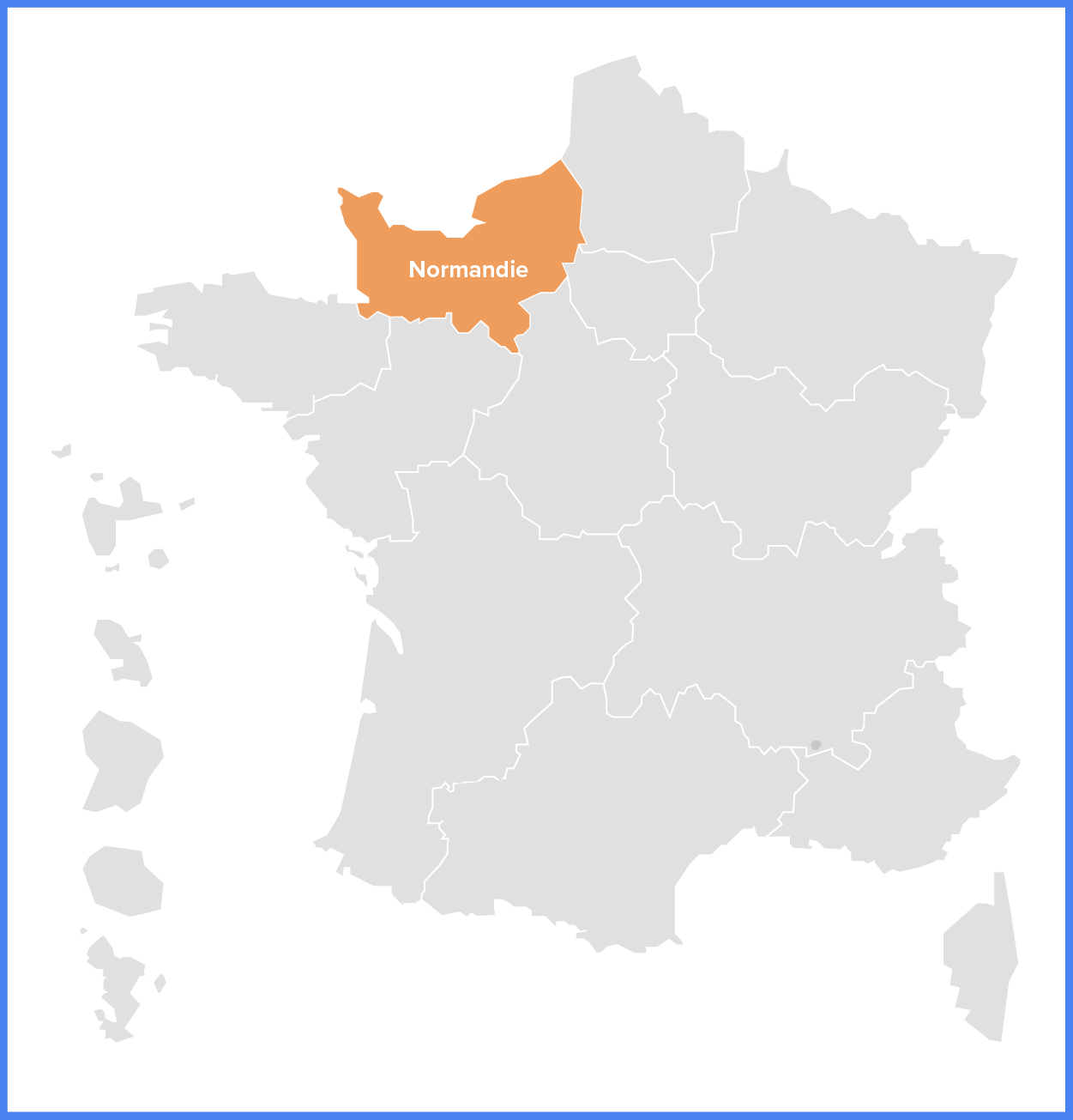 Southeast of les Hauts-de-France is la Normandie (Normandy), which is the largest producing region of cow milk-based cheeses and cream, as well as apples and cider. For this reason, many Normand dishes are butter or cream-based. This is also where the Allied Normandy landing took place on several beaches on June 6, 1944.