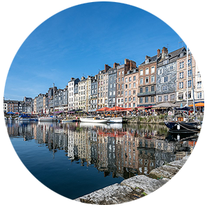 Honfleur is a harbor city with highly-recognizable tall and narrow homes.