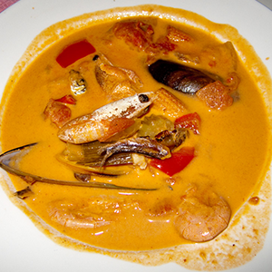 La marmite dieppoise, a fish and seafood stew in a creamy broth |