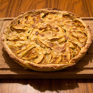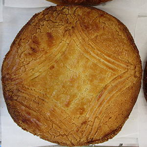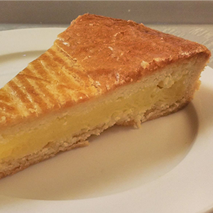 Le gâteau basque consists of pastry cream between two layers of pastry dough that is then baked in the oven. |