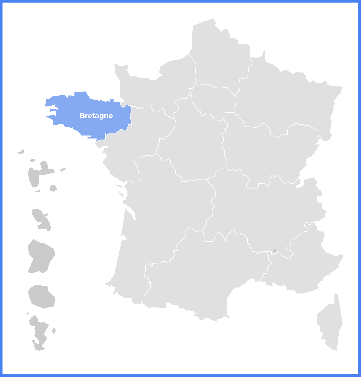 La Bretagne (Brittany) is the westernmost region in France and features the longest shoreline of all the regions. Its moderate climate, beaches, and cultural attractions make it a very popular destination for tourists. It has a strong fishing industry, as well as large areas dedicated to agriculture and cattle breeding.