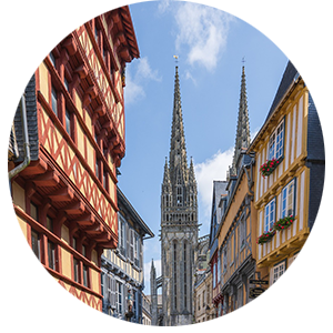 La vieille ville de Quimper (Quimper’s old town) is where you can view many maisons à colombages (half-timbered houses), which are typical of Brittany architecture.