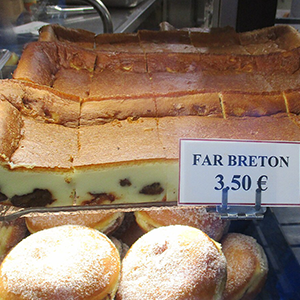 Le far breton, a type of flan which is often made with des pruneaux (prunes) |