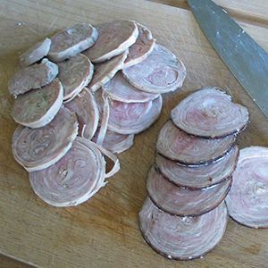 L’andouille de Guémené is a sausage made with pork intestines threaded around each other, which gives it its particular appearance. |