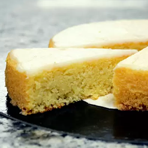 Le gâteau nantais, a type of pound cake soaked with a rum and lemon mixture, and covered with white icing |