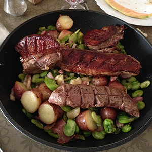 Le filet de canard (filet of duck) and le magret de canard (another type of filet but from a force-fed duck) are often roasted and cooked medium-rare to medium. |