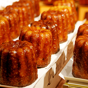 Les cannelés de Bordeaux are little cakes very recognizable by their cannelé (ridged) shape. Because they are baked quickly at high heat, the outside is crispy while the inside has the consistency of custard. |