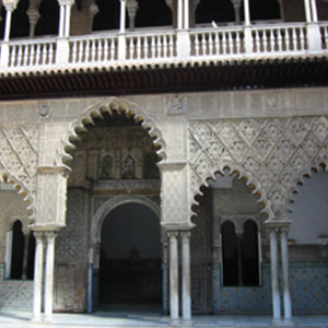 Alcázar is a fortified hilltop palace complex with courtyards and fountains. The original building likely dates to 884 (a defense against a Norman invasion). The Nasrid King Mohamed V had important artisans from Toledo and Granada build a palace surrounding two patios in the late 1200s or early 1300s. Construction continued during the reconquest of 1248, but only ruins remain. During the reign of Alfonso X,