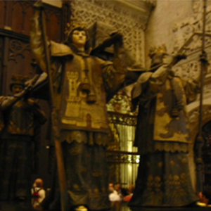 gilded wooden carvings of 1,000 biblical figures. There are many beautiful side rooms separate from the nave, including a chapel house with an oval dome. The highlight of this cathedral is the tomb of Christopher Columbus.