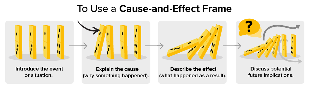 - Provides a clear understanding of the relationship between an event or situation and/or what happened because of it, why it occurred, and what might continue to happen.