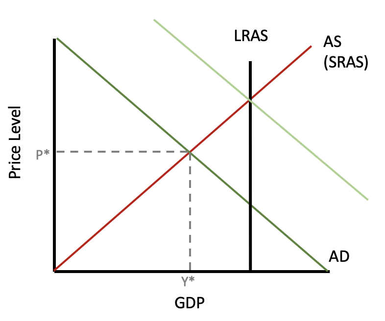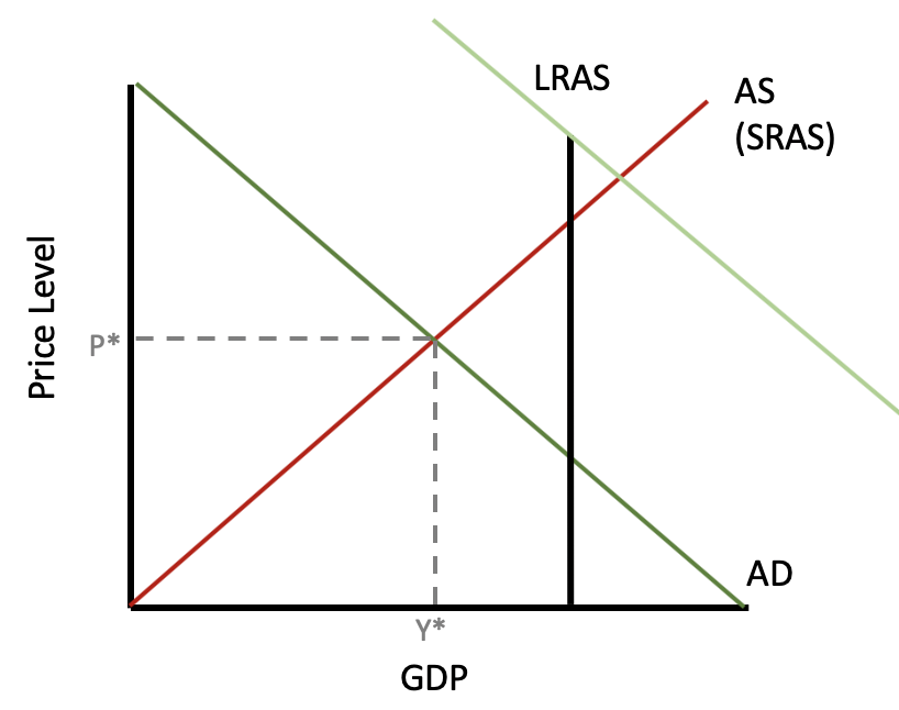 When suppliers or producers are experiencing increased prices, SRAS, or short-run aggregate supply, can shift to the left, bringing the economy back to equilibrium, but now at higher prices.
