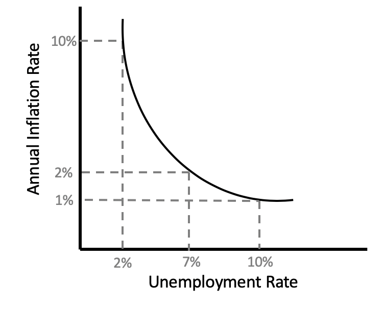 This would place us on a point well outside of the curve. We cannot simply move along this simplified Phillips curve and find that combination of unemployment and inflation.