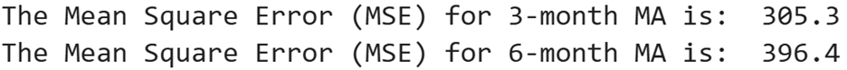The MSE for the 3- and 6-month moving average forecasts are shown below.