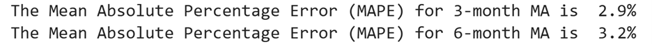 The MAPE for the 3- and 6-month moving average forecasts are shown below.