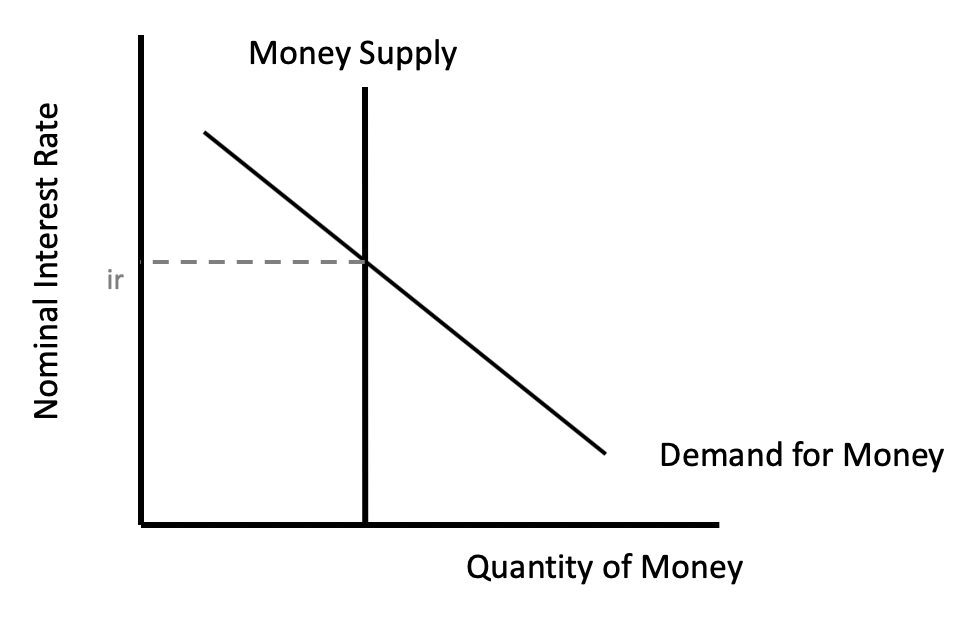 Let's look at the impact this has on the money market. Here is a demand and supply graph for money.