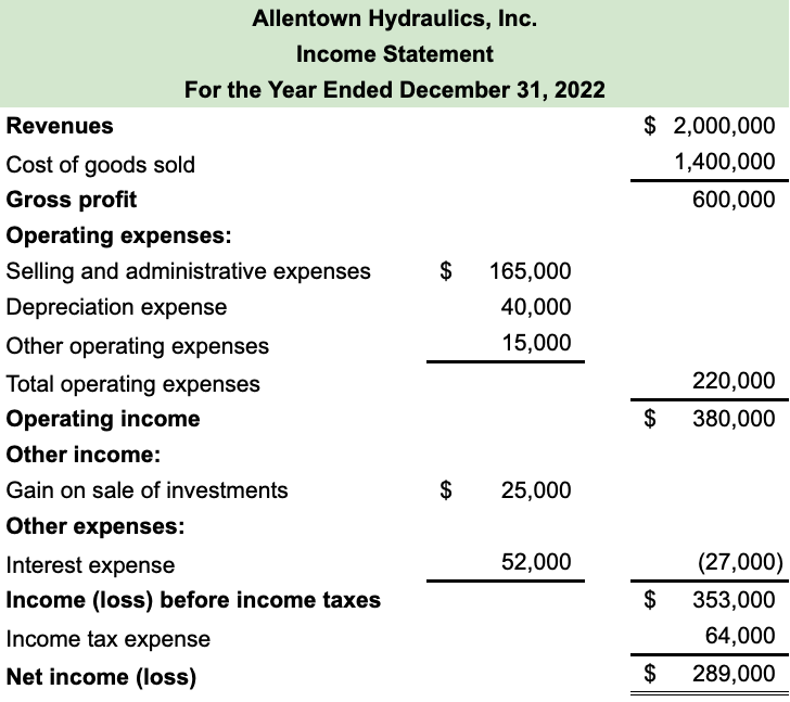 First, let’s take a look at Allentown Hydraulics’s income statement for 2022.