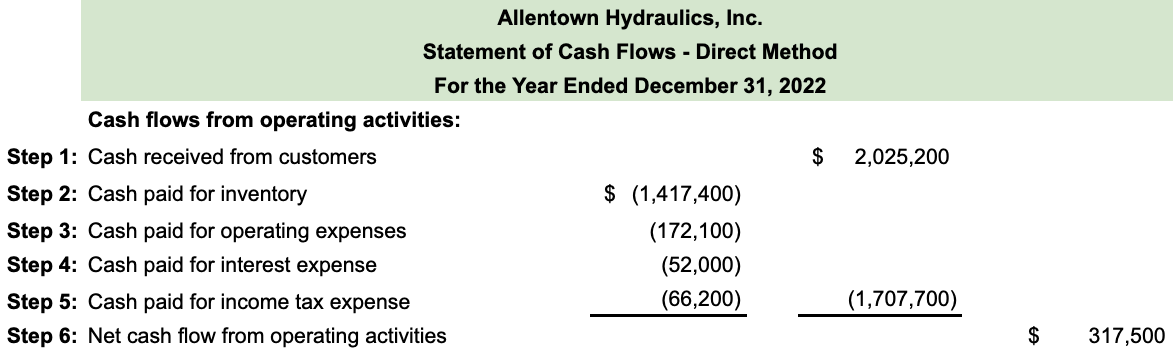 Now, we will walk through the steps of the direct method using the information from the Allentown income statement and balance sheet.