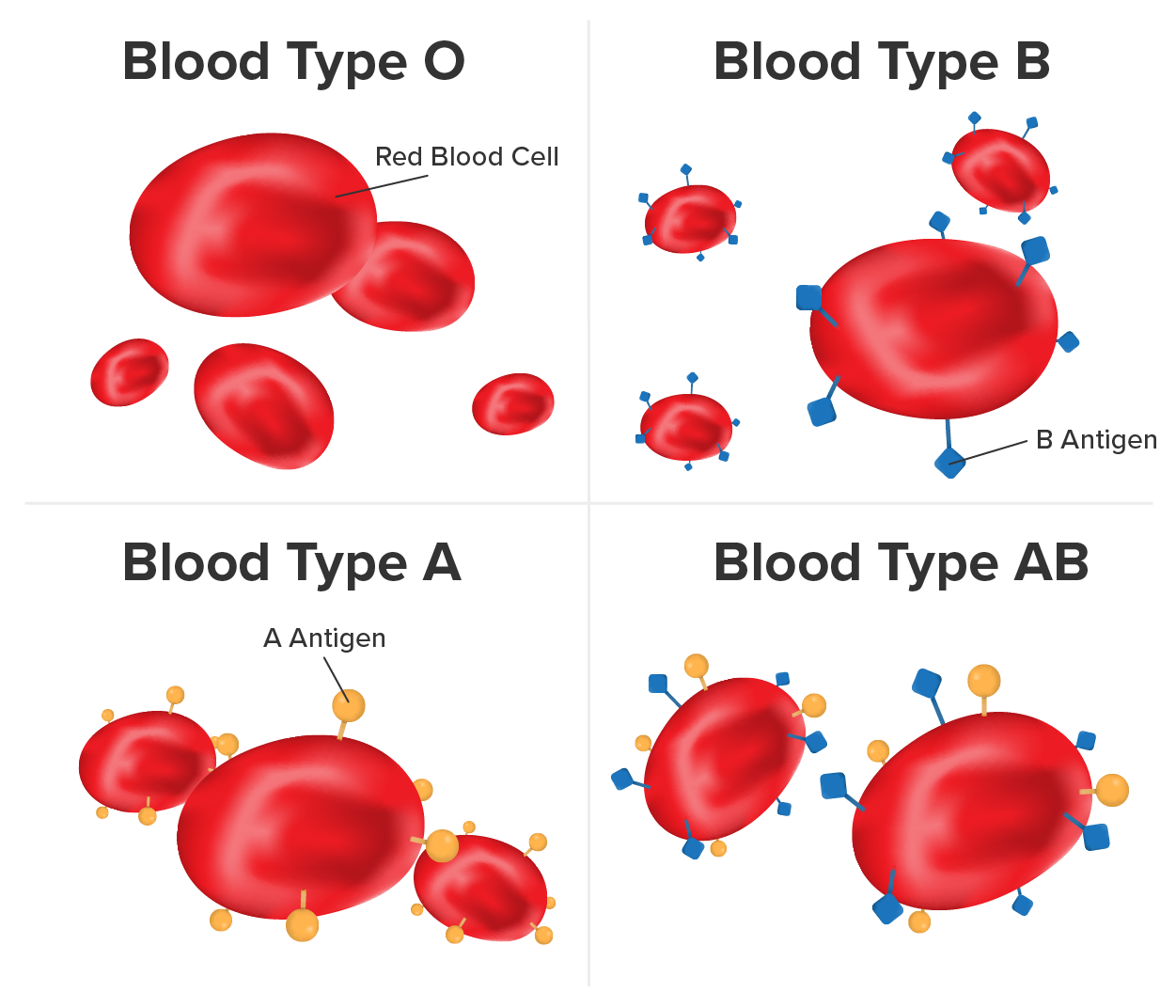 A child will inherit one of these alleles from each parent, which results in one of four possible phenotypes (A, B, AB, or O), commonly known as your blood type.
