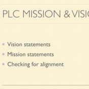 The final step in the process is checking for alignment. You need to check for alignment between the PLC vision and the PLC mission. And you need to check the PLC vision and mission for alignment to the vision and mission of the school district. If there are any areas of misalignment, you will work as a team to adjust the vision or mission as necessary.