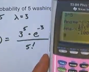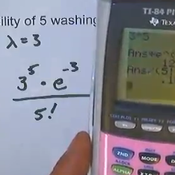 So basically, that tells me that there is about a 10% chance that five washing machines will fail in a particular year if on average three fail. A lot of times, this calculation is built into a calculator. So I'm going to go to my calculator. And I'm going to go to a menu. And I'm going to pick this function Poisson PDF.