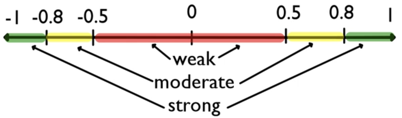 Correlation is going to allow you to observe the strength and direction of a linear association between two quantitative variables. Recall that it is a number between negative 1 and positive 1.