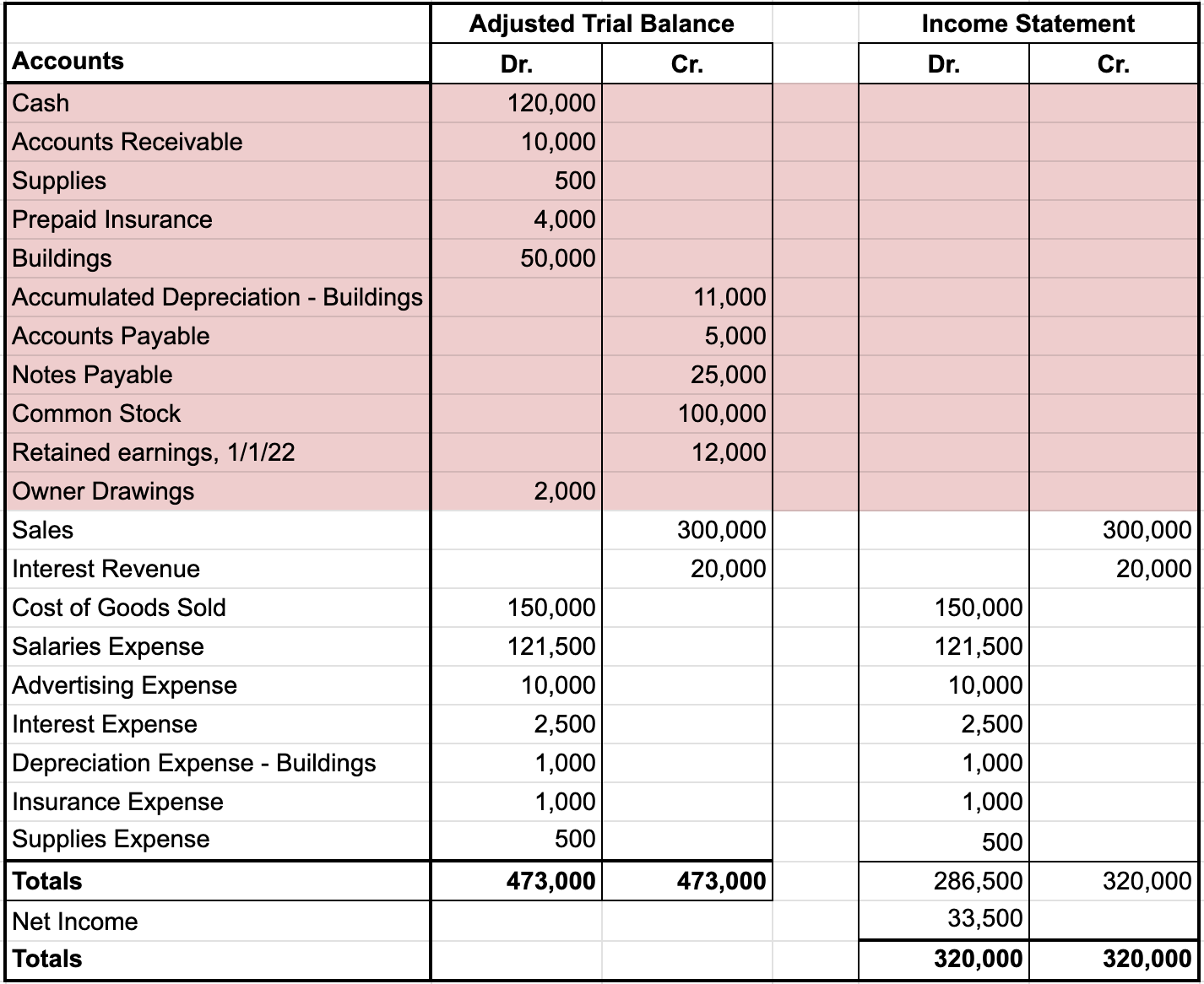 Again, remember that you don't need the permanent accounts from your adjusted trial balance; you just need the temporary accounts--the revenues and expenses.